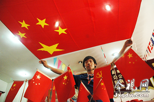 隨著新中國(guó)成立60周年慶典的到來(lái),南昌市場(chǎng)上,購(gòu)買(mǎi)國(guó)旗的單位和個(gè)人日漸增多,銷(xiāo)售狀況十分火爆。但大多數(shù)購(gòu)買(mǎi)國(guó)旗的市民都不知道,國(guó)旗的標(biāo)準(zhǔn)尺寸也是有嚴(yán)格規(guī)定的,購(gòu)買(mǎi)時(shí)應(yīng)該選擇標(biāo)準(zhǔn)尺寸。  銷(xiāo)售人員向記者展示標(biāo)準(zhǔn)的丙號(hào)國(guó)旗